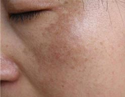 1、黄褐斑:俗称“蝴蝶斑”或“妊娠斑”,一般会出现在脸部的颧部、颊部、鼻、前额、颏部等部位。